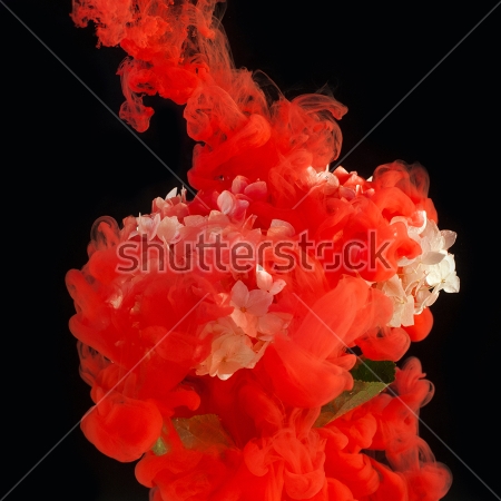 Aртикул 111177897765DВ нашей компании Вы можете заказать картину "Белые цветы гортензии в клубах красного дыма на чёрном фоне" .
