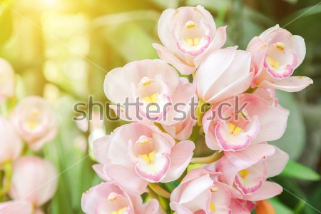 Картина Нежно-розовые цветы орхидеи в тёплом мягком освещении