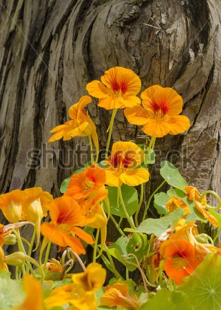 Aртикул 11290382461DВ нашей компании Вы можете заказать картину "Красивая жёлтая настурция на фоне старого сухого дерева" .