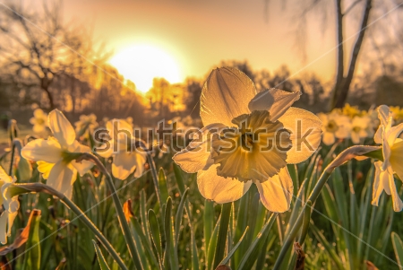 Aртикул 111224474730DВ нашей компании Вы можете заказать картину "Белые нарциссы в лучах золотого заката" .