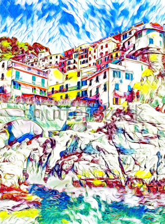 Aртикул 111127343764DВ нашей компании Вы можете заказать картину "Прибрежный городок в скалах" .