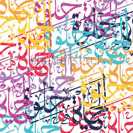 Aртикул 11560345905DВ нашей компании Вы можете заказать картину "Разноцветный коллаж с арабскими символами" .