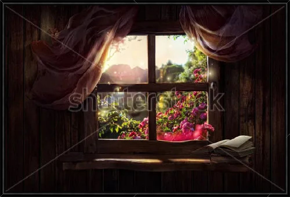 Aртикул 11286866599DВ нашей компании Вы можете заказать картину "Окно в прекрасный сказочный сад с розами в лучах солнца" .