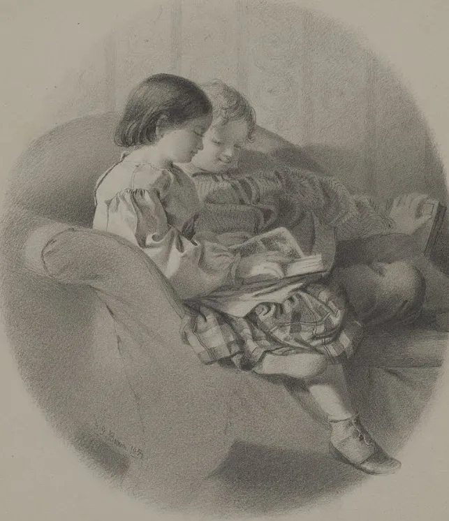 Aртикул 424433D Браун Джон ДжорджВ нашей компании Вы можете заказать картину "Девочка и мальчик читают на диване" Браун Джон Джордж .