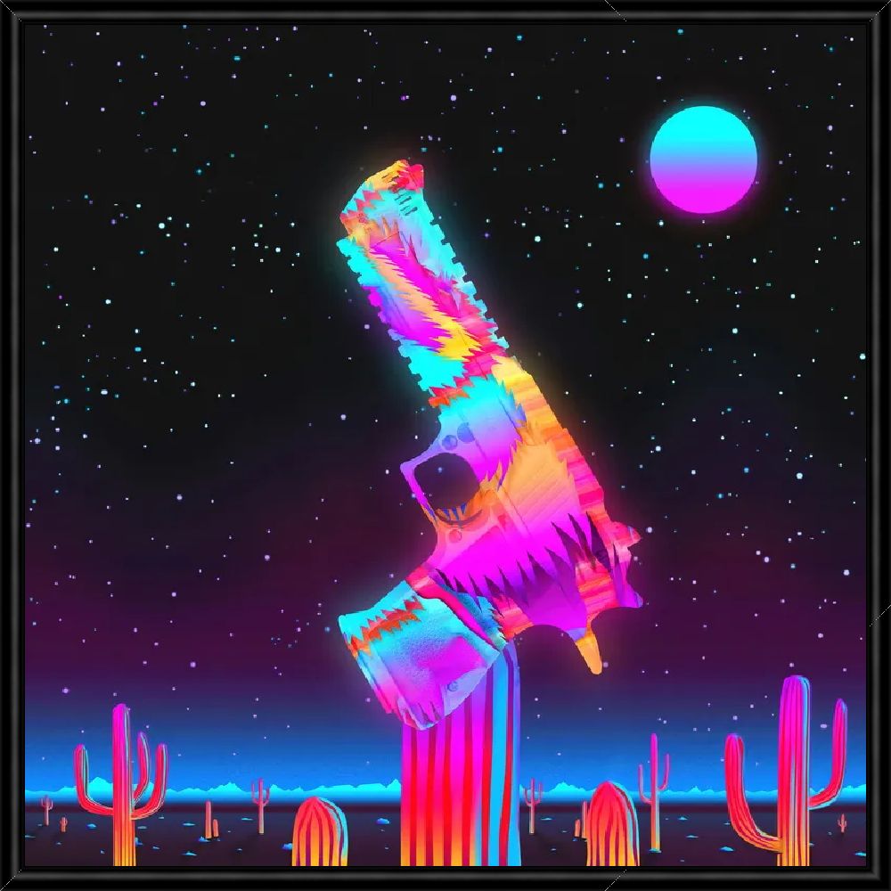 Aртикул 52874DВ нашей компании Вы можете заказать картину "Неоновый пистолет и кактусы" .