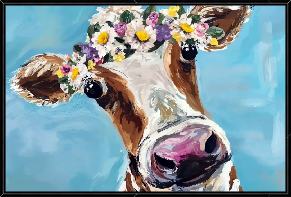 Aртикул 11427DВ нашей компании Вы можете заказать картину "Корова с венком из ромашек" .