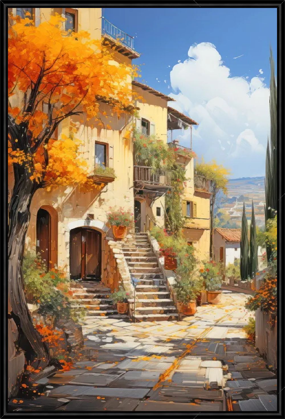 Aртикул 14231CВ нашей компании Вы можете заказать картину "Итальянский дворик с лестницей" .