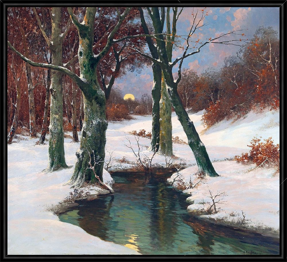 Aртикул 57102D Адольф КауфманнВ нашей компании Вы можете заказать картину "Зимний пейзаж с восходящей луной" Адольф Кауфманн .