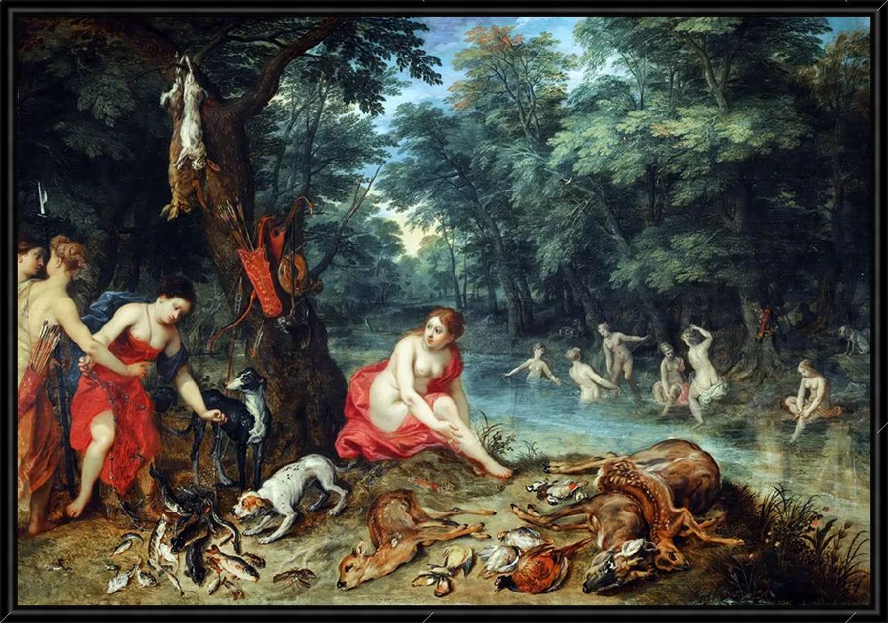 Aртикул 88580D Брейгель Ян СтаршийВ нашей компании Вы можете заказать картину "Купание нимф (Нимфы Дианы возвращаются с рыбалки)" Брейгель Ян Старший .