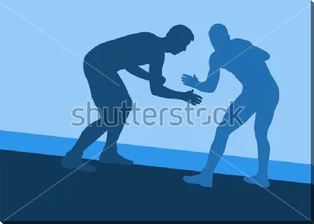 Картина маслом Силуэты двух борцов в стойке перед началом поединка на сине-голубом фоне