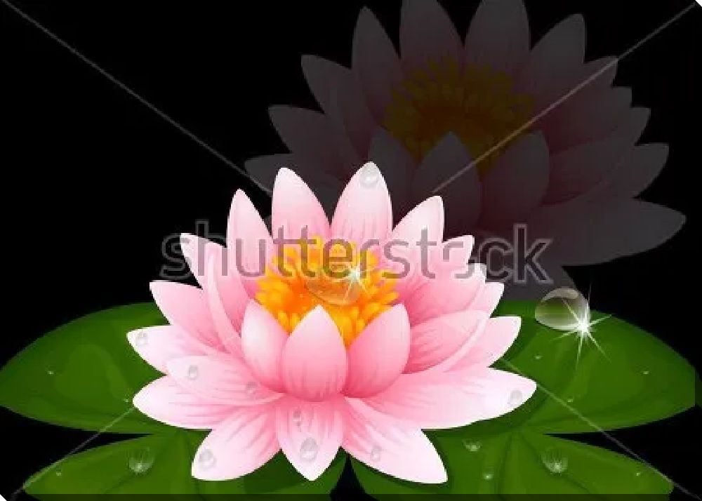 Картина маслом Розовая кувшинка с капельками росы на чёрном фоне