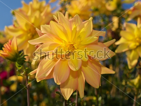 Картина маслом Солнечные ярко-жёлтые георгины в саду