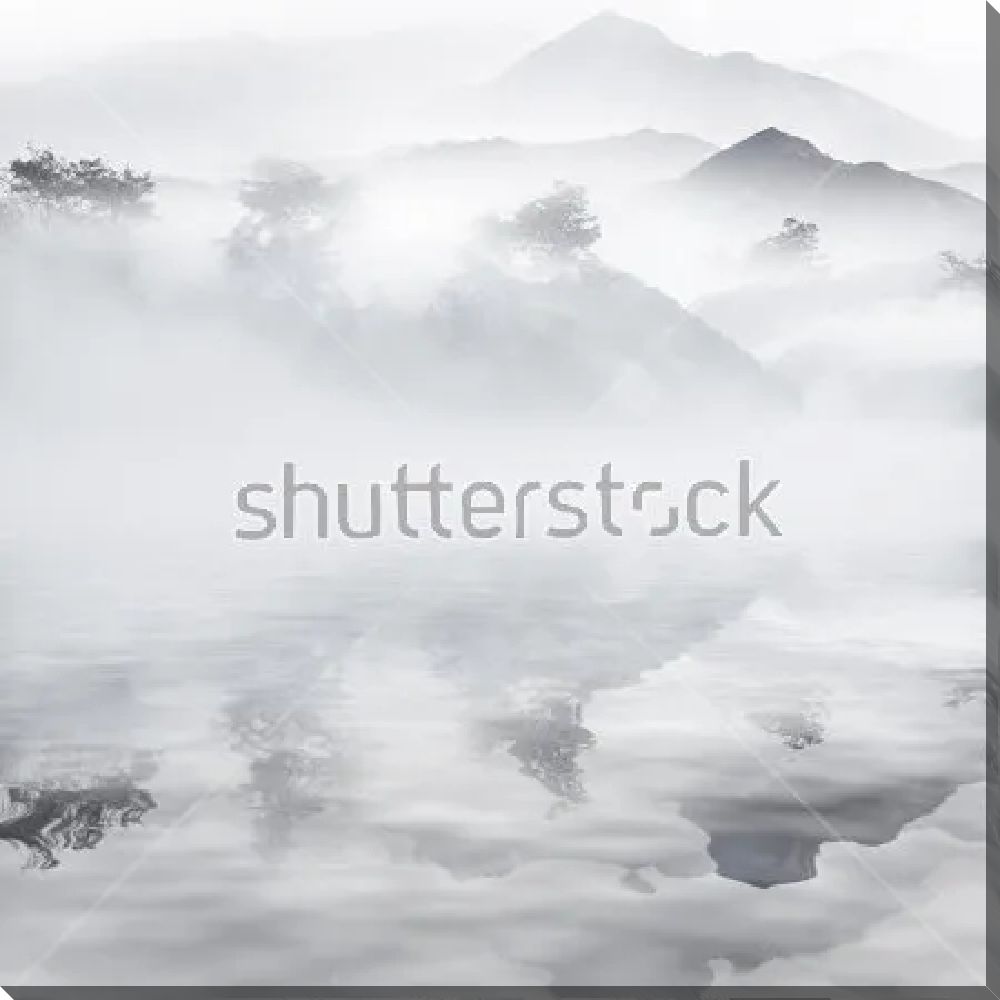 В нашей компании Вы можете заказать картину маслом "Монохромный пейзаж с туманом в горах и отражением в озере" по цене от 9230 руб.