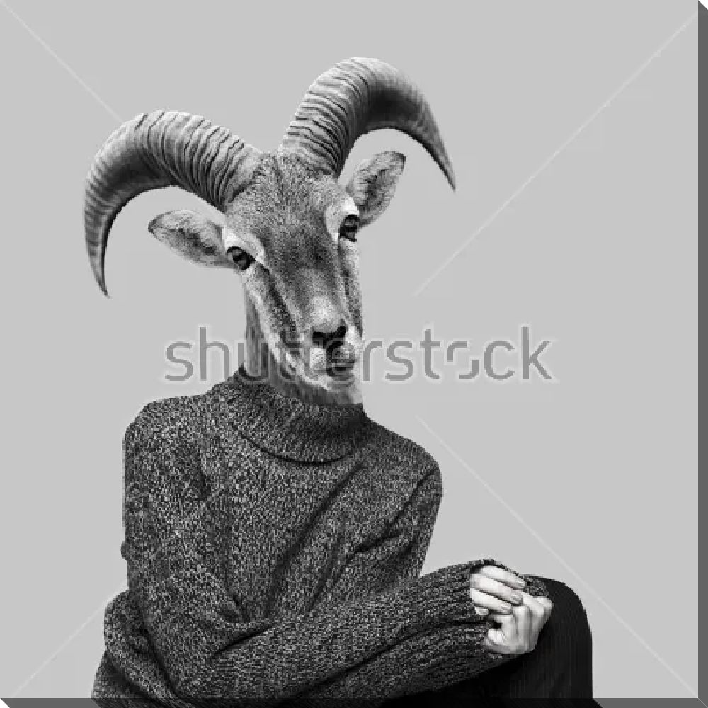 В нашей компании Вы можете заказать картину маслом "Забавный коллаж человека в свитере с головой горного козла" по цене от 9230 руб.