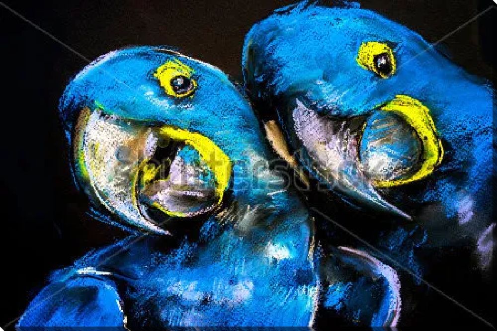 Картина маслом Парочка синих попугаев на чёрном фоне
