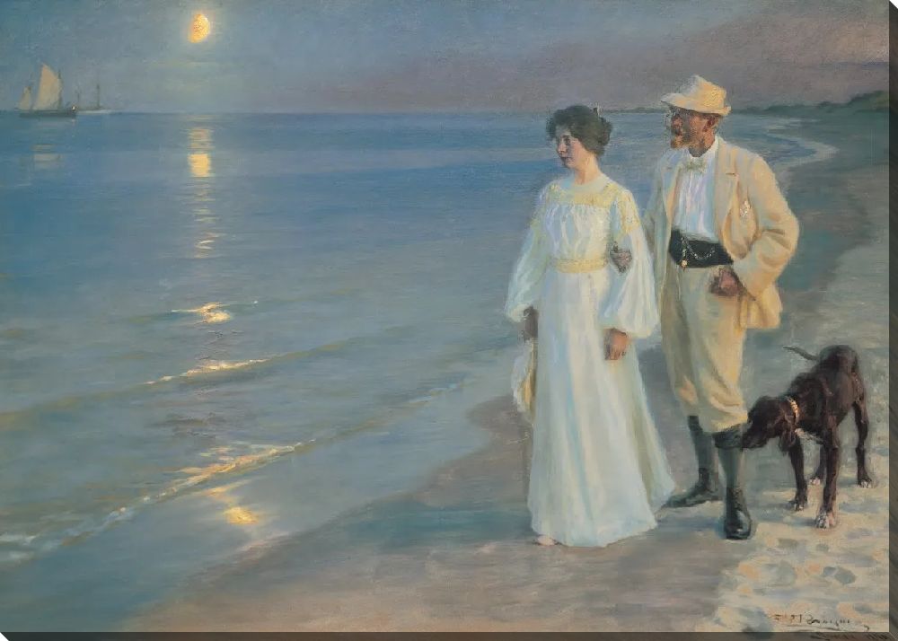 Картина маслом Летний вечер на пляже в Скагене. Художник и его жена. Кройер Педер Северин