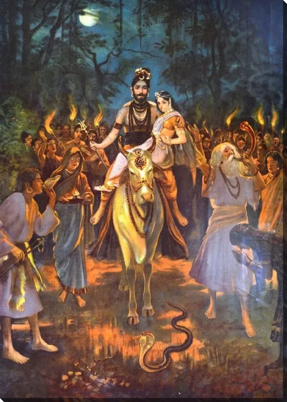 Картина маслом Шива и Парвати в процессии (брак Шива Парвати) Варма Рави
