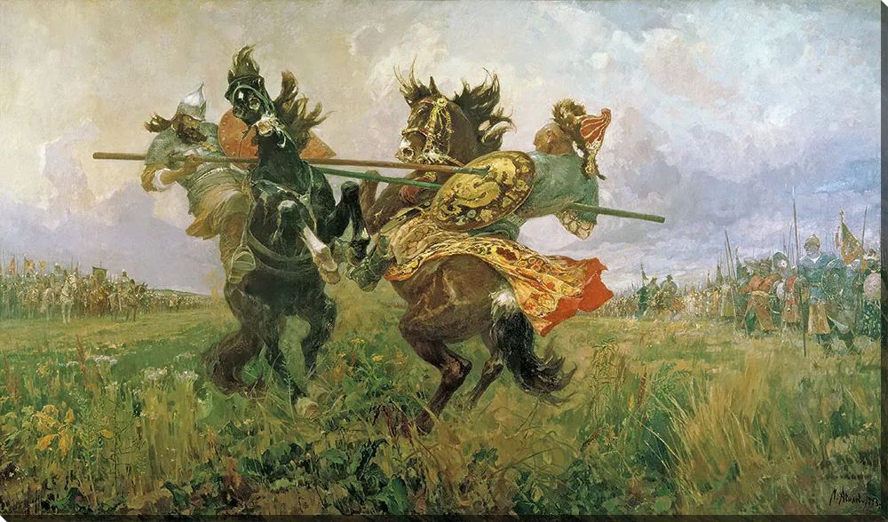 Картина маслом Поединок Пересвета с Челубеем на Куликовом поле Авилов Михаил