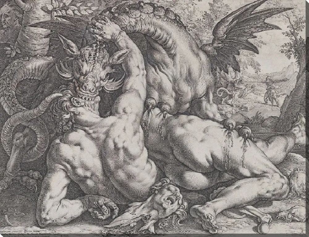 Картина маслом Дракон, пожирающий спутников Кадма Корнелиссен Корнелис