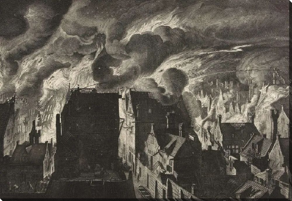 Картина маслом Пожар в Эландсграхте в Амстердаме, 1679 Ян Ван дер Хейден