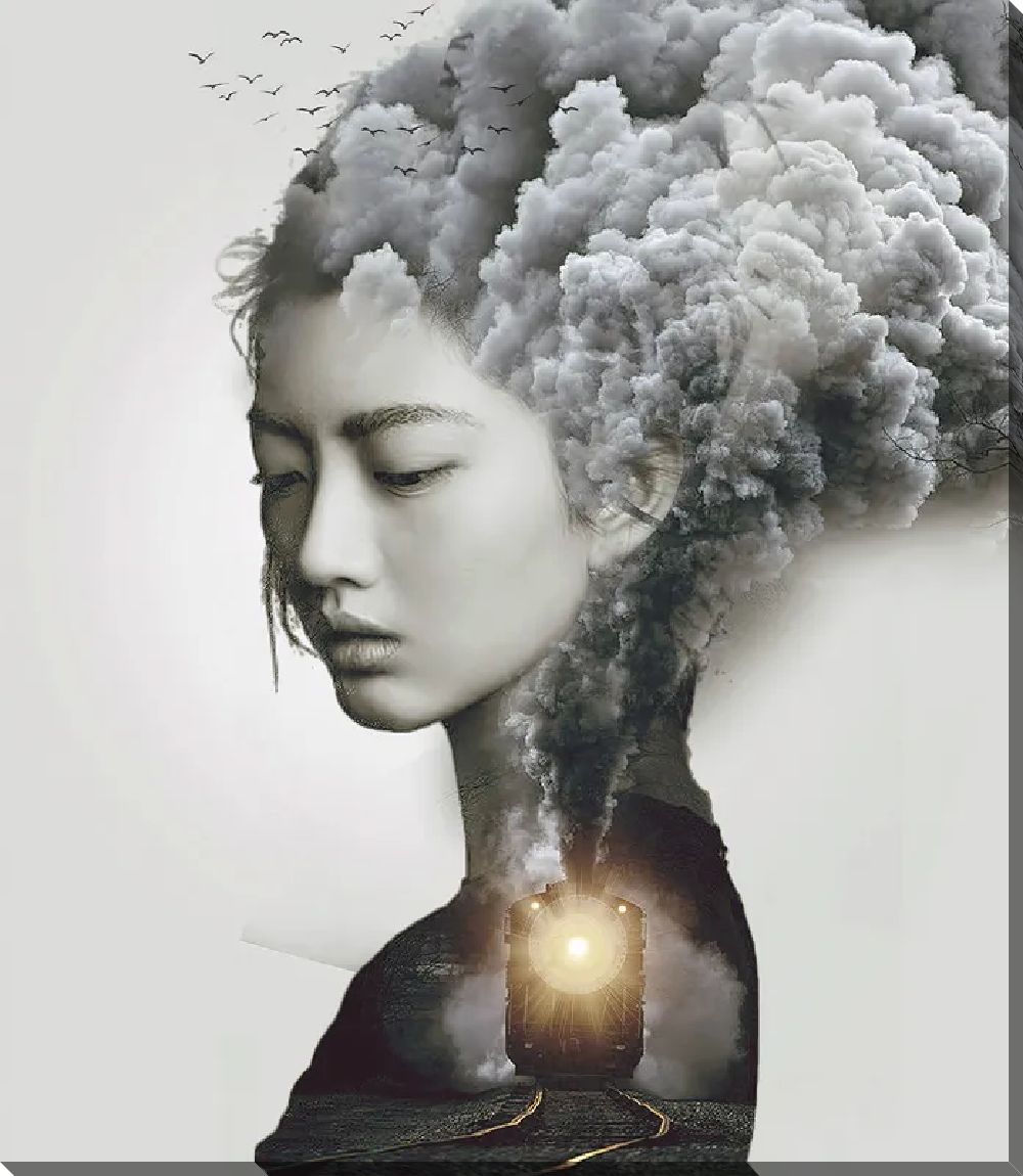 Картина маслом Японская девушка и паровоз