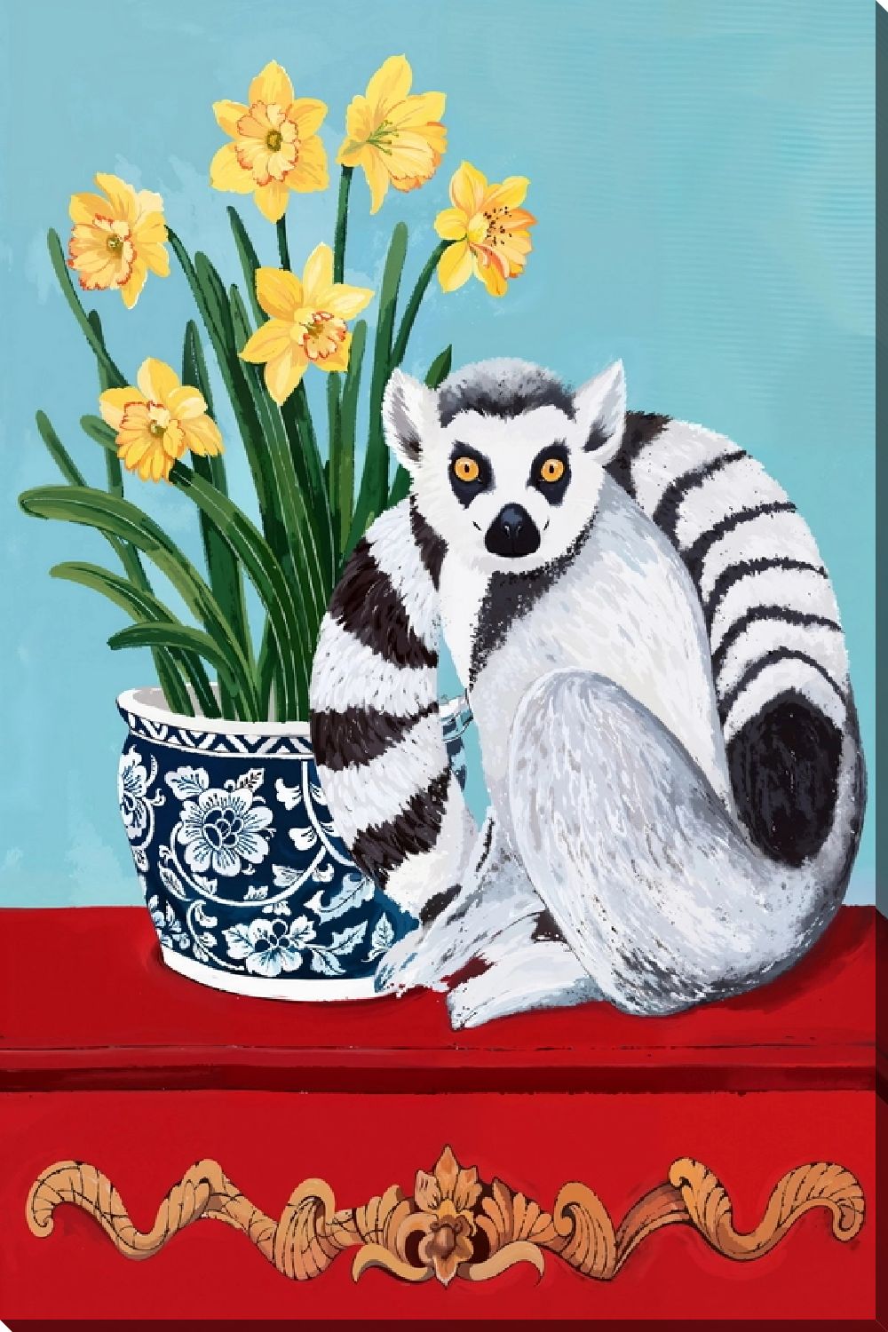 Картина маслом Лемур и букет нарциссов