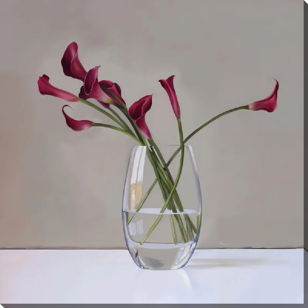 Картина маслом Каллы в прозрачной вазе