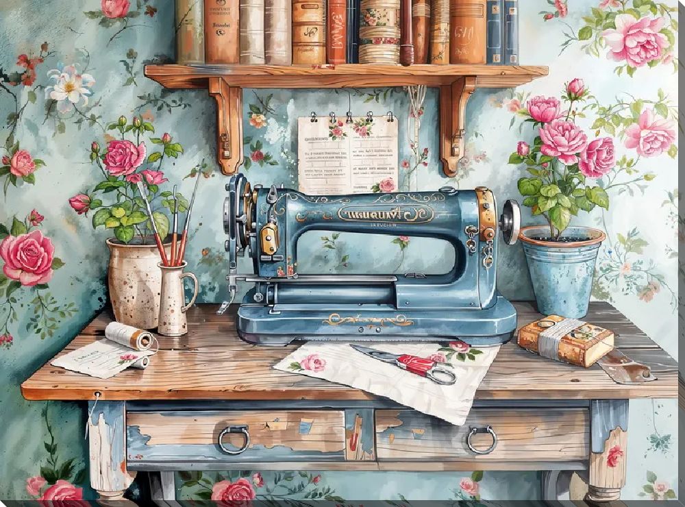 В нашей компании Вы можете заказать картину маслом "Швейная машинка на столе" по цене от 9330 руб.