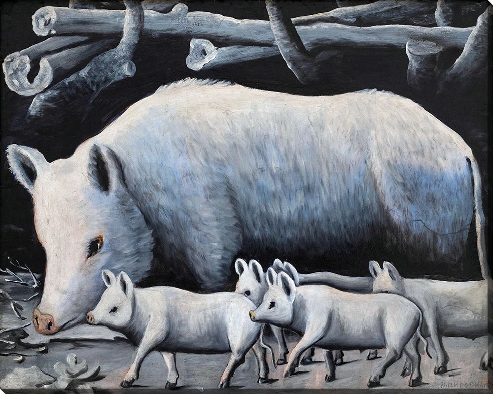 В нашей компании Вы можете заказать картину маслом "Белая свинья с поросятами" Пиросмани Нико по цене от 9300 руб.