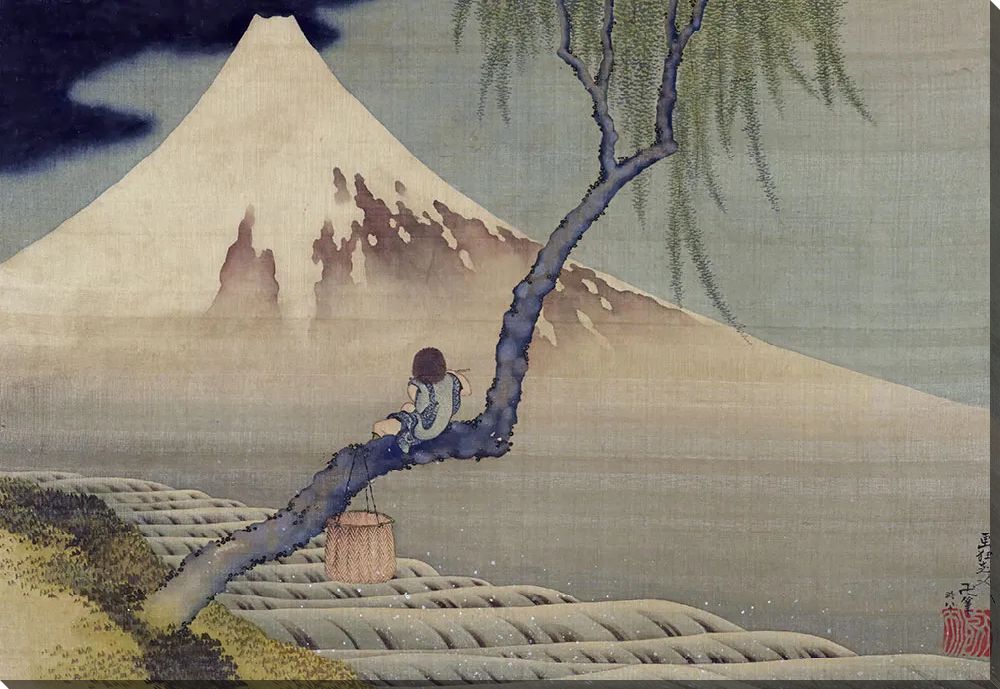 Картина маслом Мальчик смотрит на гору Фудзи Хокусай Кацусика