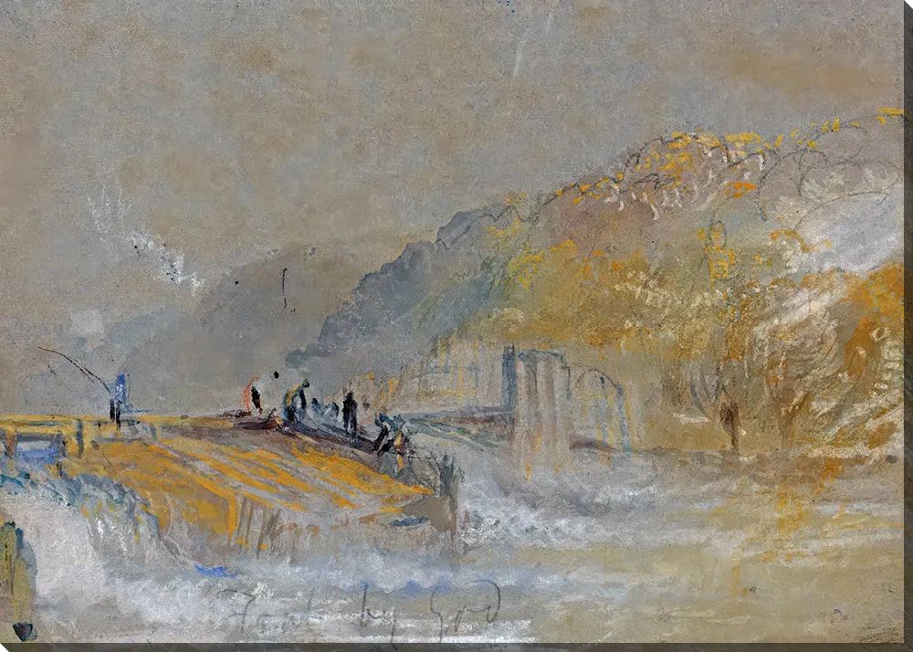 Картина маслом Пейзаж реки Фол Богом с рыбаками, ловящими рыбу с плотины Тёрнер Уильям