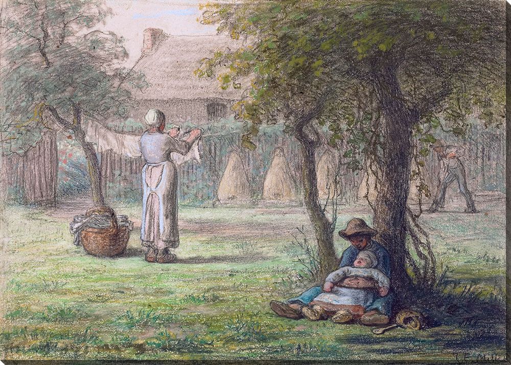 Картина маслом Женщина развешивает белье Милле Жан-Франсуа