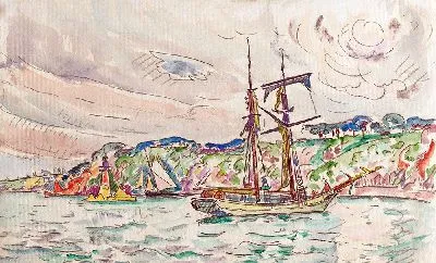 Модульная картина Корабли у реки Трие (1925 г.) Синьяк Поль