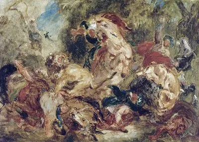 Модульная картина Охота на львов Делакруа Эжен