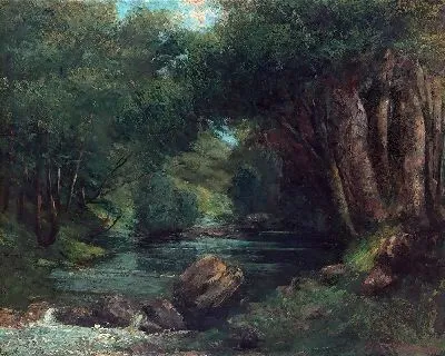 Aртикул 85484C Курбе ГюставВ нашем интернет-магазине Вы можете заказать модульную картину "Ручей в лесу" Курбе Гюстав.