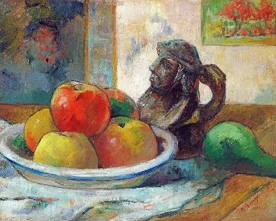 Модульная картина Натюрморт с яблоками, грушей и керамическим портретным кувшином Гоген Поль