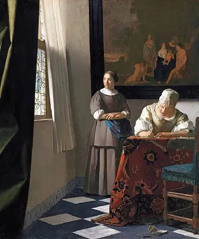 Модульная картина Женщина пишет письмо со своей служанкой Вермеер Ян
