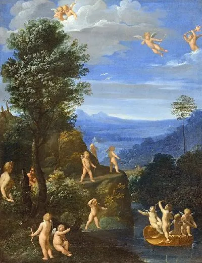 Модульная картина Пейзаж с шутками Амуров занят различными игровыми занятиями Рени Гвидо
