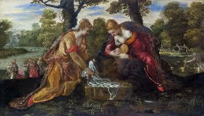 Aртикул 86217D ТинтореттоВ нашем интернет-магазине Вы можете заказать модульную картину "Нахождение Моисея" Тинторетто.