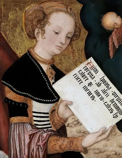 Aртикул 86750D Кранах Лукас СтаршийВ нашем интернет-магазине Вы можете заказать модульную картину "Святая женщина (Святая Агнесса) с надписью" Кранах Лукас Старший.