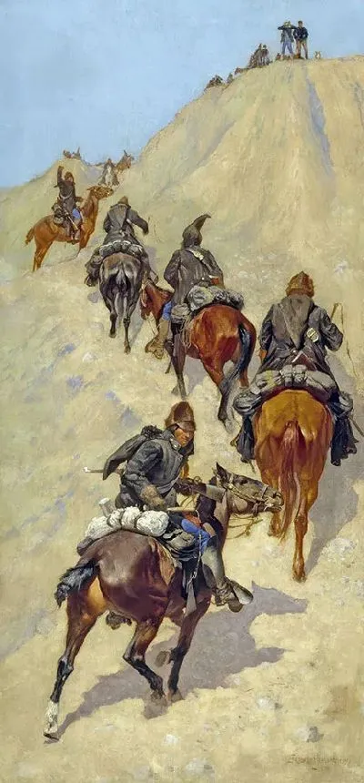 Aртикул 87367C Фредерик РемингтонВ нашем интернет-магазине Вы можете заказать модульную картину "Скауты поднимаются на гору" Фредерик Ремингтон.