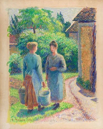 Aртикул 87728C Писсарро КамильВ нашем интернет-магазине Вы можете заказать модульную картину "Две женщины в саду (1888)" Писсарро Камиль.
