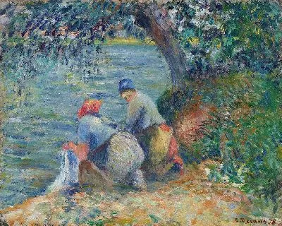 Aртикул 87786C Писсарро КамильВ нашем интернет-магазине Вы можете заказать модульную картину "Шайбы у кромки воды, Понтуаз (1878 г.)" Писсарро Камиль.