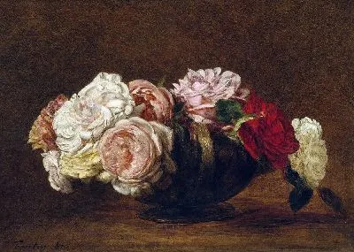 Aртикул 87887D Фантен-Латур АнриВ нашем интернет-магазине Вы можете заказать модульную картину "Розы в чаше" Фантен-Латур Анри.