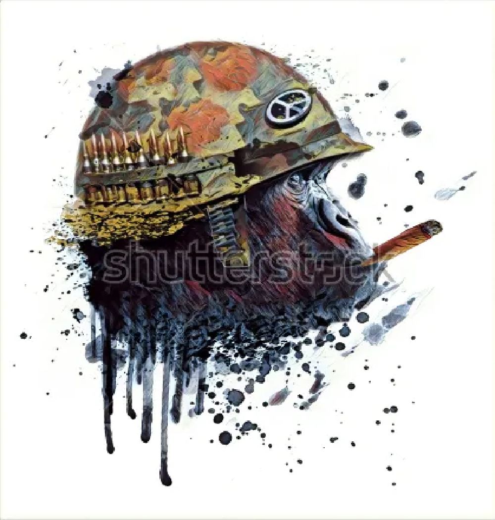 Aртикул 11774316051DВ нашей компании Вы можете купить плакат "Яркий коллаж с обезьяной в образе солдата с сигаретой на фоне акварельных потёков, брызг и клякс" по цене от 590 руб.