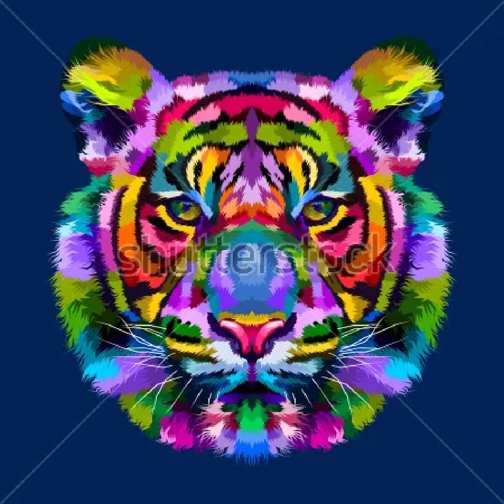Aртикул 111224253558DВ нашей компании Вы можете купить плакат "Яркая разноцветная голова тигра на синем фоне" по цене от 590 руб.