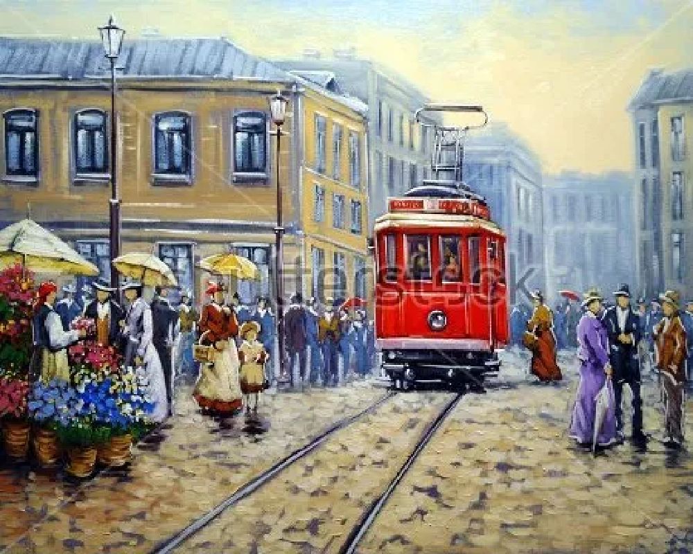 Aртикул 11638981134DВ нашей компании Вы можете купить плакат "Городской пейзаж с красным трамваем в Старом городе и прохожими с зонтами" по цене от 590 руб.