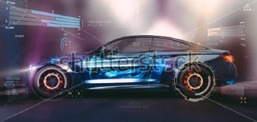 Плакат Футуристический концепт автомобиля с датчиками и различными опциями