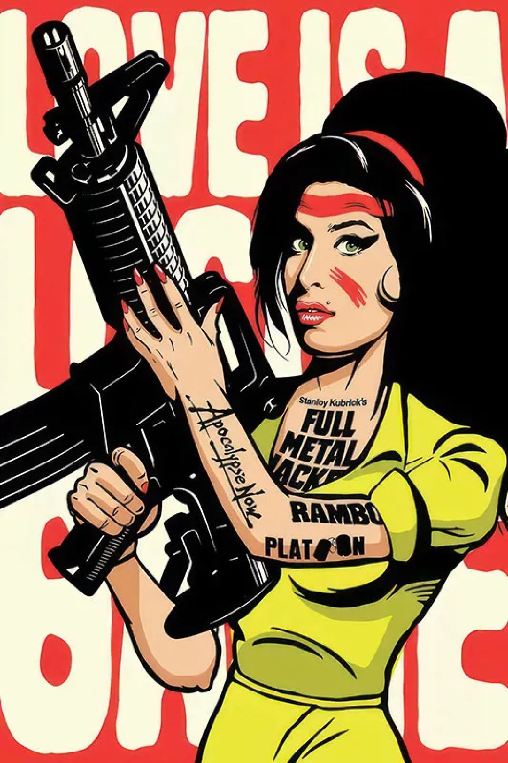 Плакат Эми Уайнхаус с татуировками и автоматом