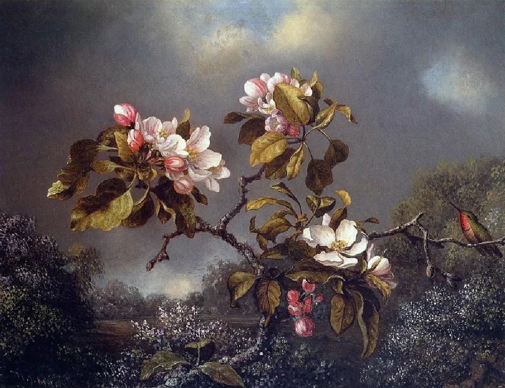Плакат Цветущая яблоня и колибри (Apple Blossoms and Humming bird) Хэд Мартин Джонсон